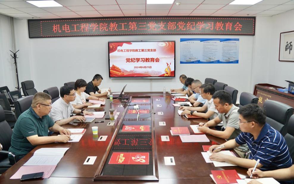 学纪、知纪、明纪、守纪,努力做遵规守纪的标杆。6月25日上午,机电工程学院教工第三党支部召开党纪学习教育会,校党委副书记、校长陈钱指导包联支部党纪学习并讲授专题党课。机电工程学院领导班子及支部全体党员参加会议。