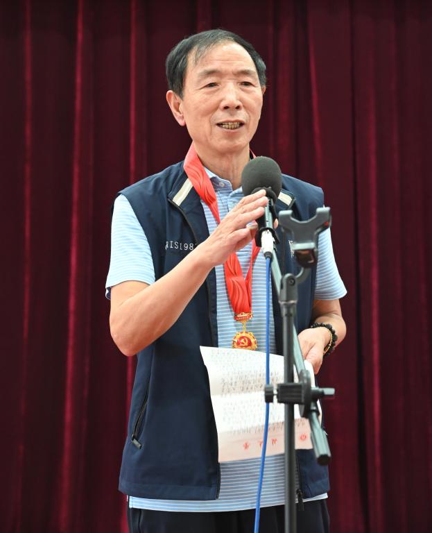“光荣在党50年”老党员代表、原我校党委副书记常晓宝在致辞时回顾了自己过往人生历程和在学校度过的难忘岁月,表示会持续关注学校发展,一如既往支持学校各项事业的高质量发展和“双一流”建设事业,积极为学校的发展建言献策。