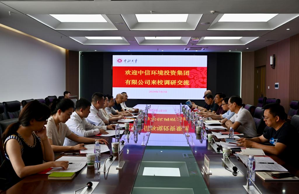 7月3日,中信环境投资集团有限公司党委委员、副总经理陈克玲一行来校调研交流。双方交流座谈会在瑾瑜国际会议中心第五会议室进行。校党委副书记、校长陈钱,省纪委监委驻中北大学纪检监察组组长贾维河出席。会议由副校长来志斌主持。