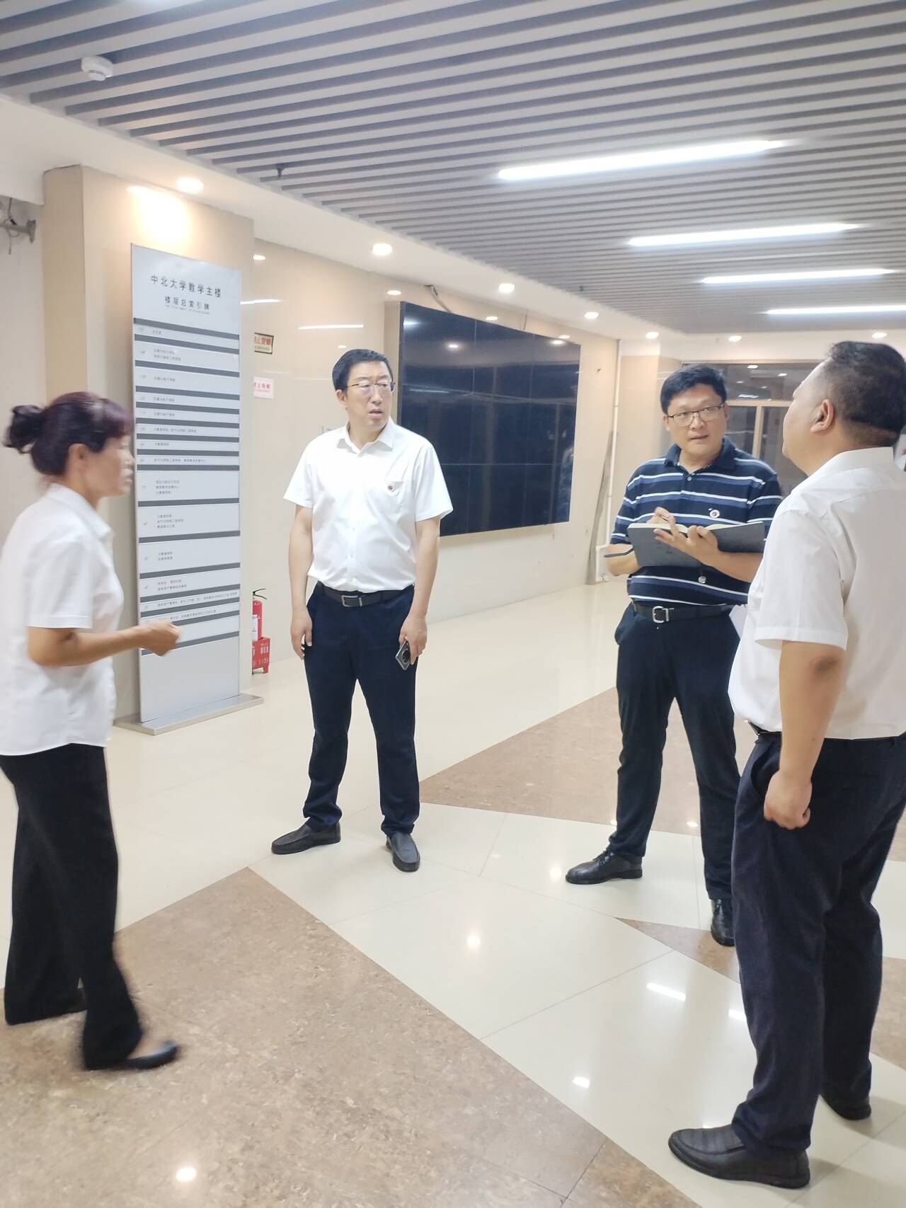 在新北区新投入使用的教学大楼及在建工地里,校领导认真听取了有关部门的汇报,对各场所以及正在抓紧施工建设的项目开展情况、开学后办公和教学的硬件设施保障、消防安全和服务保障等工作进行了现场指导。