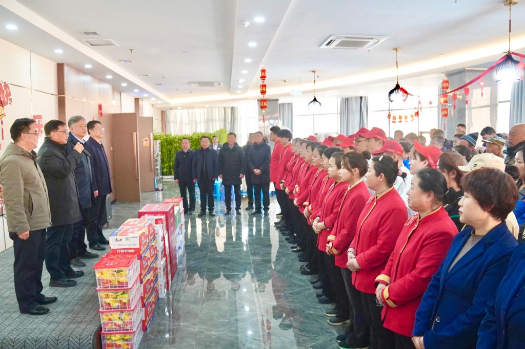校领导深入办公室、南门值班室、附属医院、食堂等地,与在岗教职工亲切交谈,希望大家继续守好岗、履好职、尽好责,全力以赴保障春节期间各项工作。在留学生公寓,校领导给留学生带去学校的关心与祝福,希望他们度过一个平安快乐的中国年。