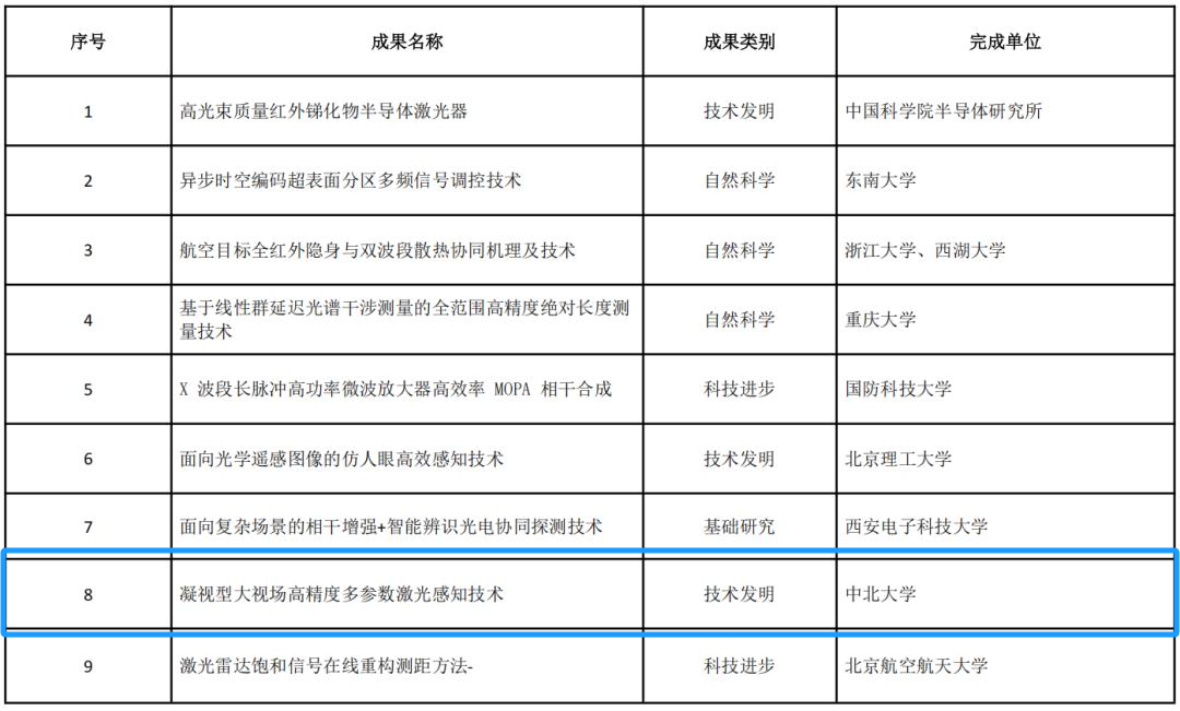 中国光学工程学会组织专家对全国申报的成果进行函评和会评,最终入选优秀成果有9项,其中自然科学类3项,技术发明类3项,科技进步类2项,基础研究类1项。