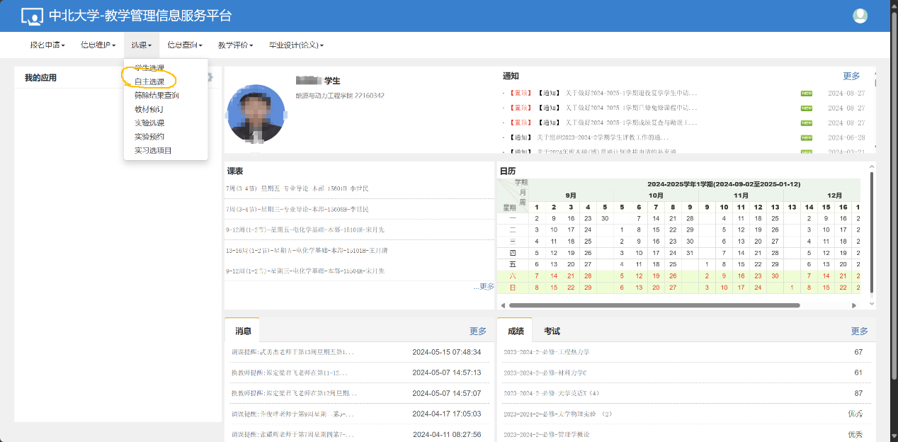 登录教务系统后,选择选课->自主选课进入选课页面。