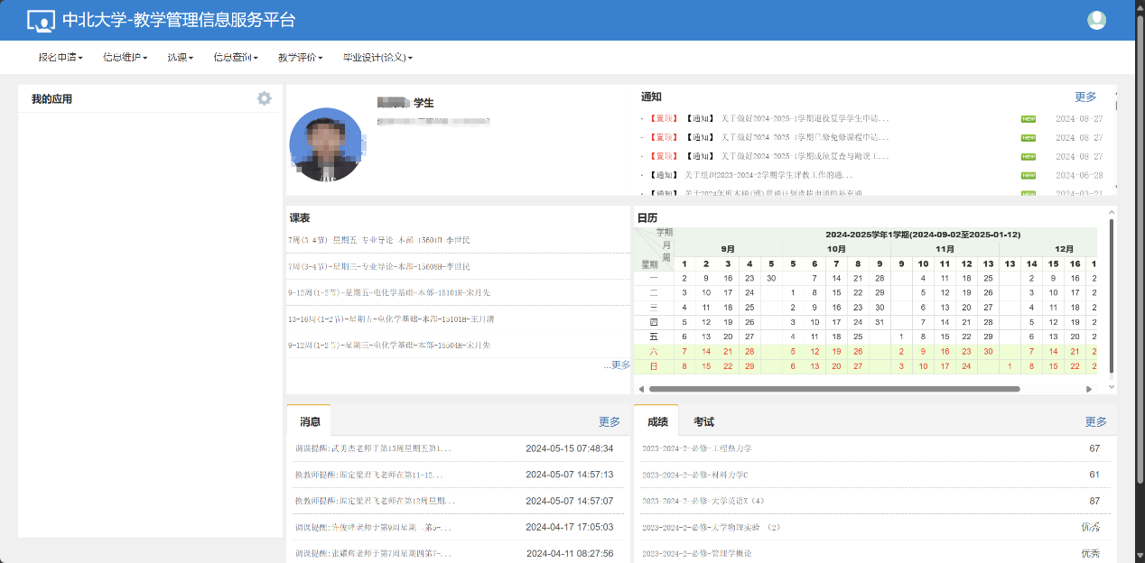 登录成功后,点击教务系统,进入教务系统,不需要二次输入用户名和密码,如下图: