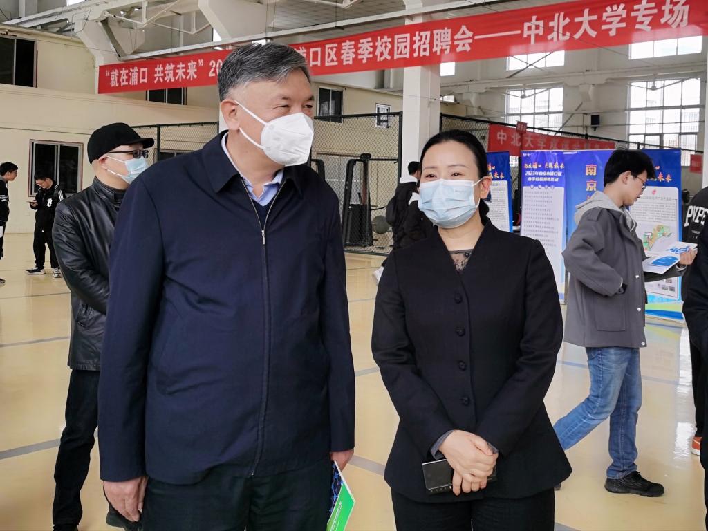 共筑未来”2023年南京市浦口区春季校园招聘会-中北大学专场在学校东区训练馆举行。副校长赵贵哲深入招聘会现场,开展“访企拓岗”促就业专项行动。