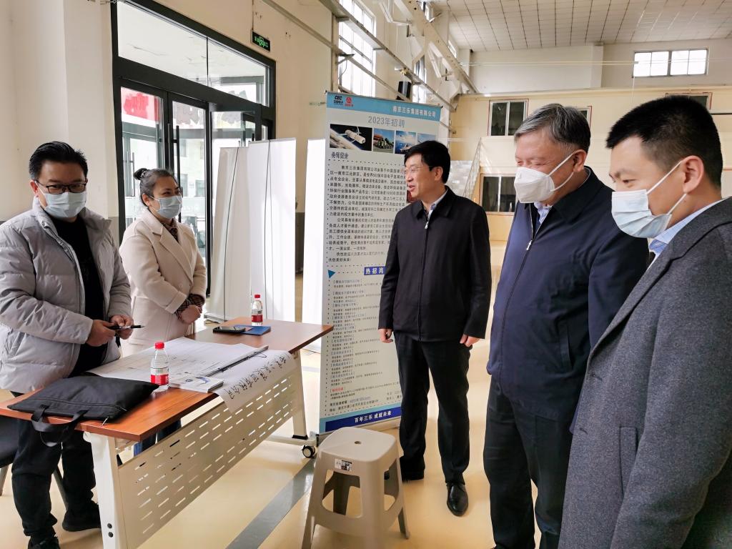 赵贵哲副校长先后来到南京三乐集团、江苏先丰纳米材料科技有限公司、南京依维柯汽车有限公司等单位展位前进行走访调研,向用人单位介绍学校人才培养情况及科研开展情况,详细了解单位用工需求、岗位设置、薪资待遇、行业发展及校友在各单位的工作情况,并为校友的优秀表现感到自豪。同时,赵贵哲副校长与南京市浦口区人力资源和社会保障局党委书记、局长胡景深入交流,对南京市浦口区长期以来给予学校的关心和支持表示感谢,希望校地双方进一步深化合作交流。