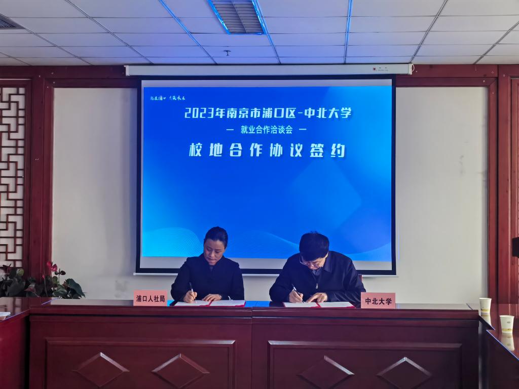 南京市浦口区——中北大学就业合作洽谈会同步进行,来自南京浦口人社局、劳动就业管理中心、高新区、经济开发区等单位的领导与我校招生与就业工作部、创新创业学院负责同志及部分学院副书记进行洽谈。双方就人才供需、产学研合作、创新大赛等方面合作进行深入交流,并签署校地人才合作框架协议。