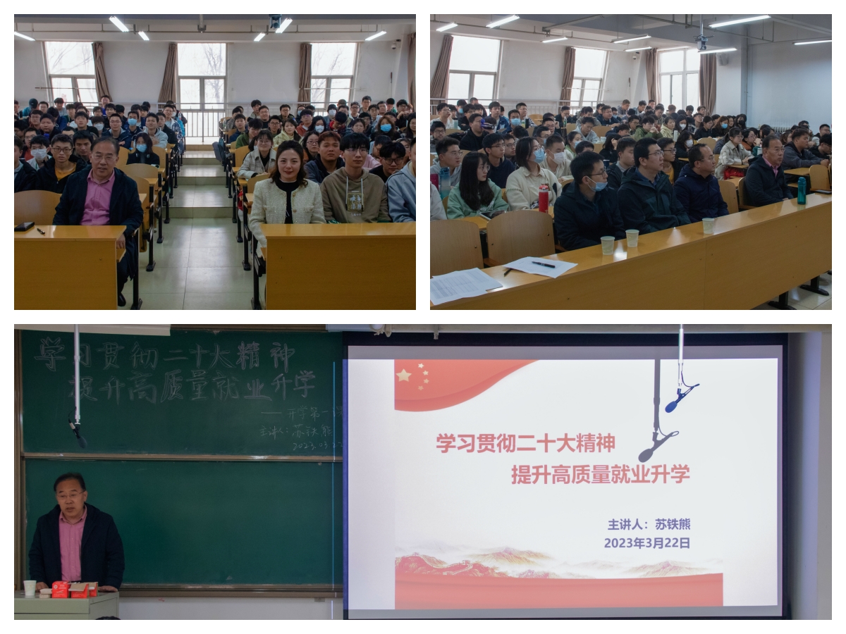 为深入学习贯彻党的二十大精神,引领广大青年学生坚定理想信念,明晰发展方向,2023年3月22日下午,副校长苏铁熊为能源与动力工程学院20160241、20160242、20160243三个班的同学作了题为《学习贯彻二十大精神,提升高质量就业升学》的主题班会,学院党委副书记兼副院长任雁、各班主任参加了此次主题班会。
