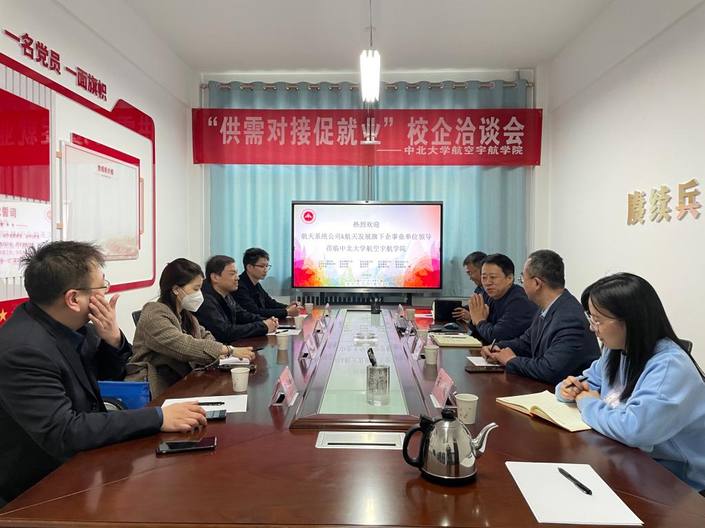 3月28日下午,航天系统公司&航天发展旗下4家企事业单位领导(航天发展李铭杰、蓝院总体部雷蕾、航天新通公司钟科、航天微系统公司申威)赴中北大学航空宇航学院开展“供需对接促就业”校企洽谈,学院党委书记罗建国、党委副书记史瑞根、副院长徐鹏及就业辅导员王姣参加洽谈会。