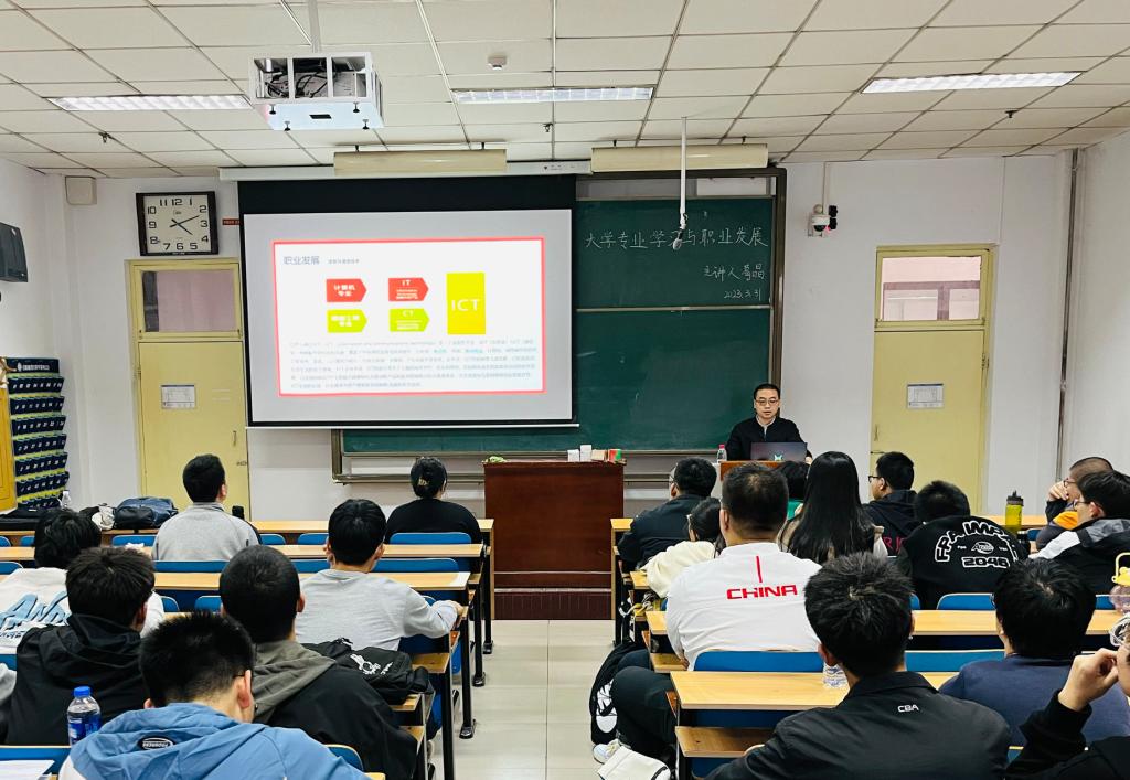 讲座上,葛晶详细介绍了通信行业的发展前景、重点企业的地域分布情况,岗位细分、工作内容和胜任要求。他讲到“现代生活和工业生产无法脱离通信独立进行,有人就会有通信需求”,通信行业职业寿命长,待遇好,具有广阔发展空间。当介绍到通信行业岗位胜任力要求时,他结合多年招聘经验,强调能力增长是点滴积累的过程,要把握住大学期间每一次学习成长的机会,有意识锻炼可迁移能力,为将来职业发展储备能量。他还分享了简历制作知识和面试技巧。