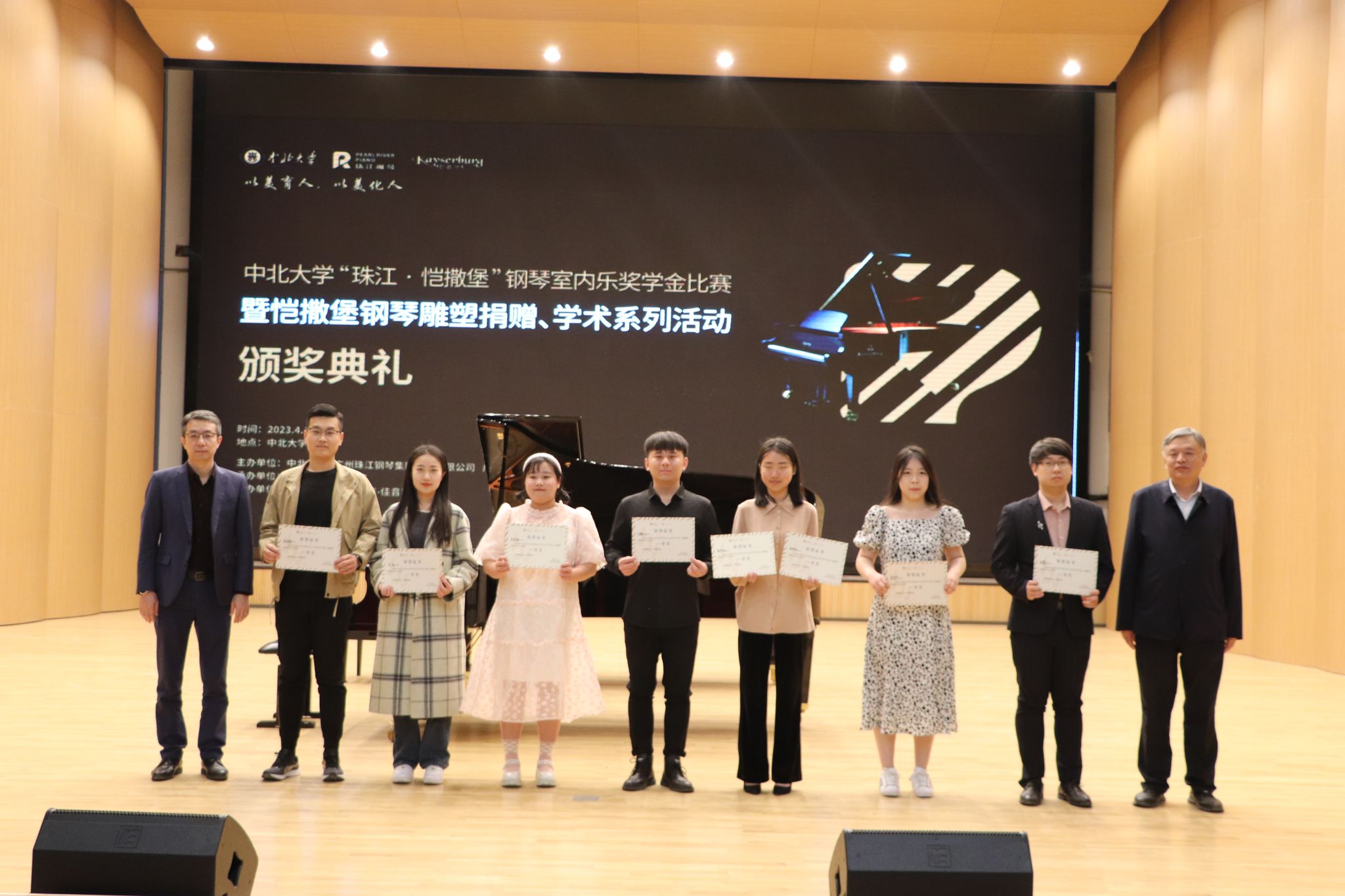 4月20日17:00,恺撒堡奖学金颁奖仪式在中北大学科艺苑举行。珠江·恺撒堡钢琴室内乐奖学金比赛的举行为学生提供了舞台表演、学术交流的机会,激发了学生学习积极性与主动性,达到“以赛促教、以赛促学”的目的。