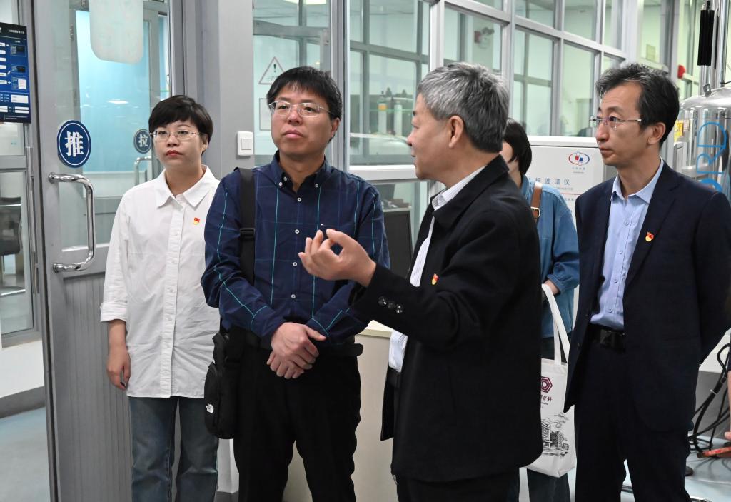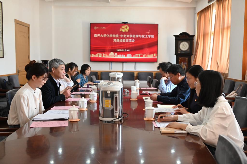 5月9日上午,调研组一行赴南开大学化学学院参观学习全国先进基层党组织建设成果和建设经验。南开大学化学学院党委获评“全国先进基层党组织”称号并入选教育部“全国党建工作标杆党委”,院党委书记张守明代表化学学院对廖海洪书记一行的来访表示热烈欢迎,并带领着大家重走习近平总书记视察南开大学之路,介绍了化学学科的发展历程。交流会上,张守民书记以《党建引领助推学科建设 “五大工程”彰显发展实效》为题详细介绍了学院党建工作开展情况。分析科学研究中心研究生第四党支部书记刘雅琪介绍了全国高校“百个研究生样板党支部”的培育创建经验。廖海洪书记介绍了中北大学的历史沿革、办学理念、学科特色、学生培养以及化学与化工学院的概况。随后,与会双方就如何通过党建引领教学和业务工作,如何挖掘特色创建党建品牌等内容进行交流。