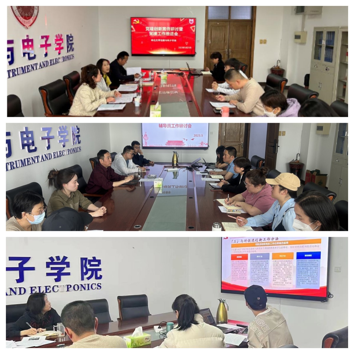 闻令而动结合工作主动出击。学生工作人员以高度的责任心和使命感投入到工作中。在日常业务工作落实落细、精益求精的基础上,辅导员们制定行动方案,走进学院各学科团队,有效对接,深挖每一个团队的文化特色,进而凝练各团队的思政文化元素。学院精进立仪、厚积铸器的的科学精神、不断进取的务实态度一次次感染着辅导员们。“让受教育者先受教育”,辅导员将团队和学院的思政文化精神传递给广大学生,凝聚育人力量。