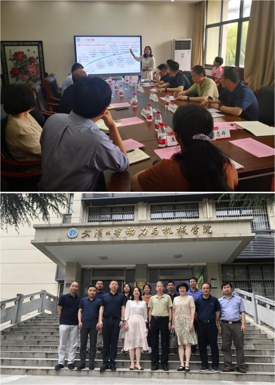 在武汉大学,动力与机械学院党委书记孙萍、副院长侯佑民、动力工程系主任岳亚楠、国一流课程负责人谢诞梅与调研组进行了座谈交流。孙萍书记全面介绍学院情况,并就院党委在管党治党、办学治院中的作用发挥进行交流。双方围绕“人才队伍建设”、“国一流专业建设”、“国一流课程申报”、“创新创业教育”等方面进行深入交流。