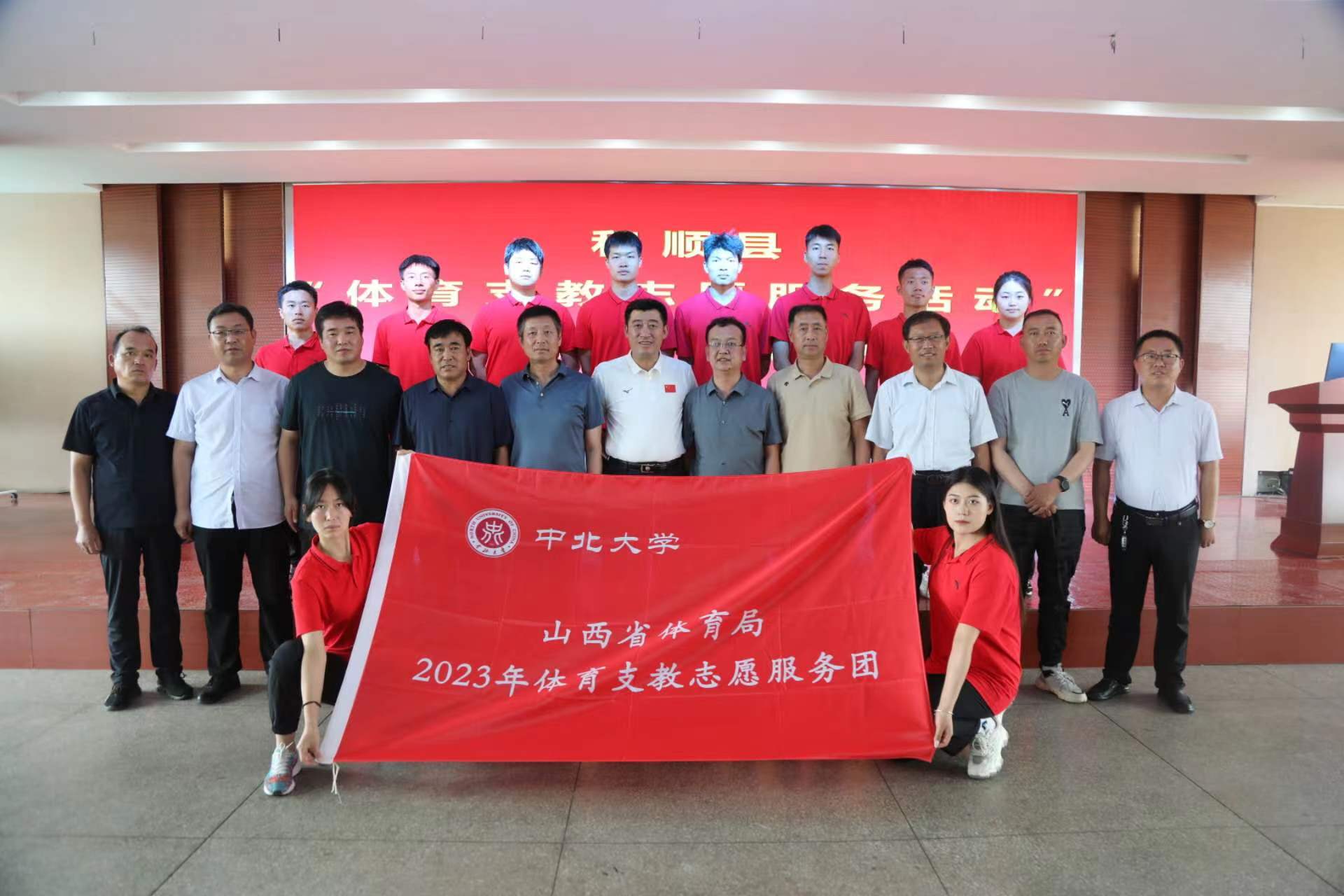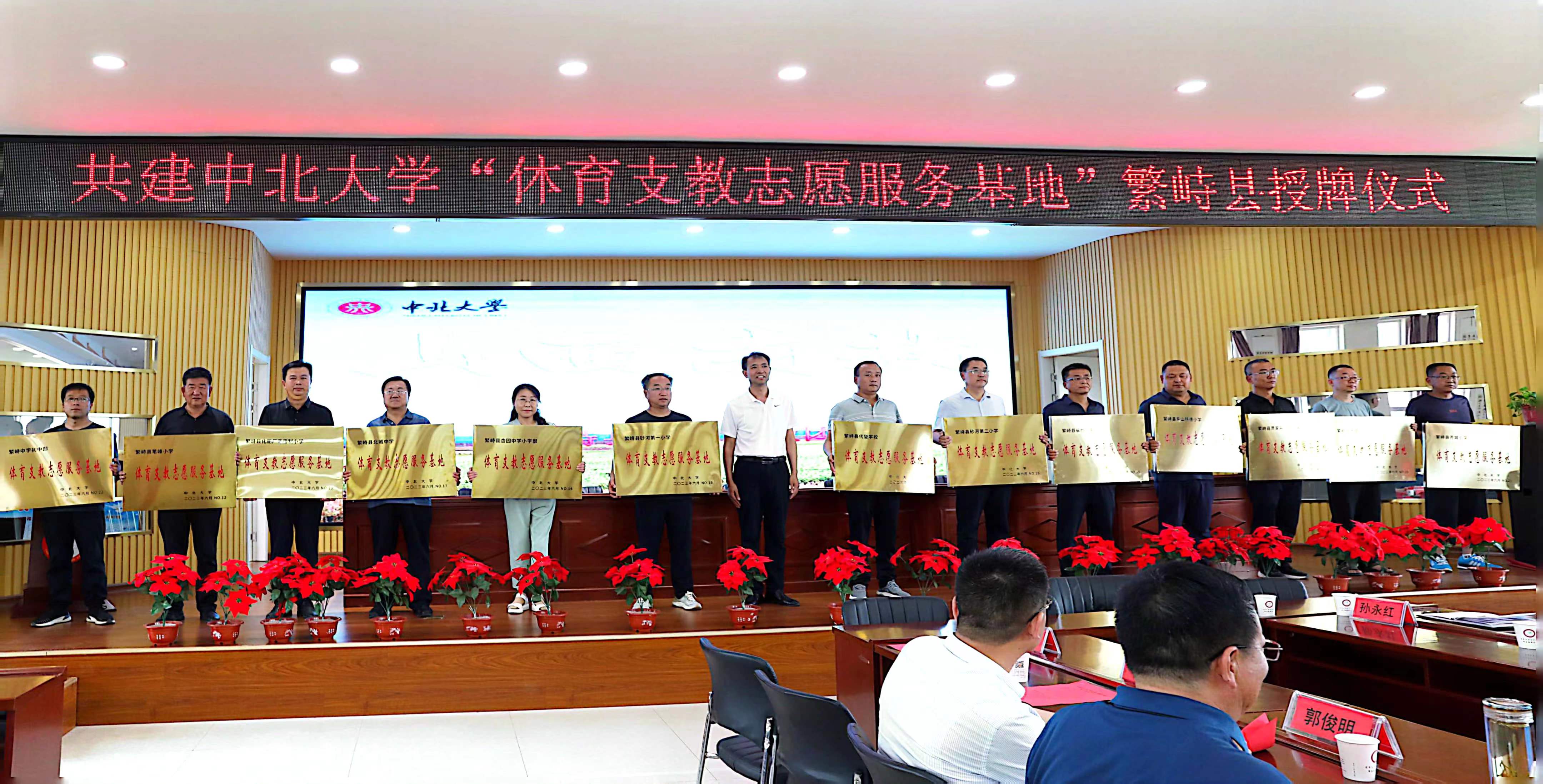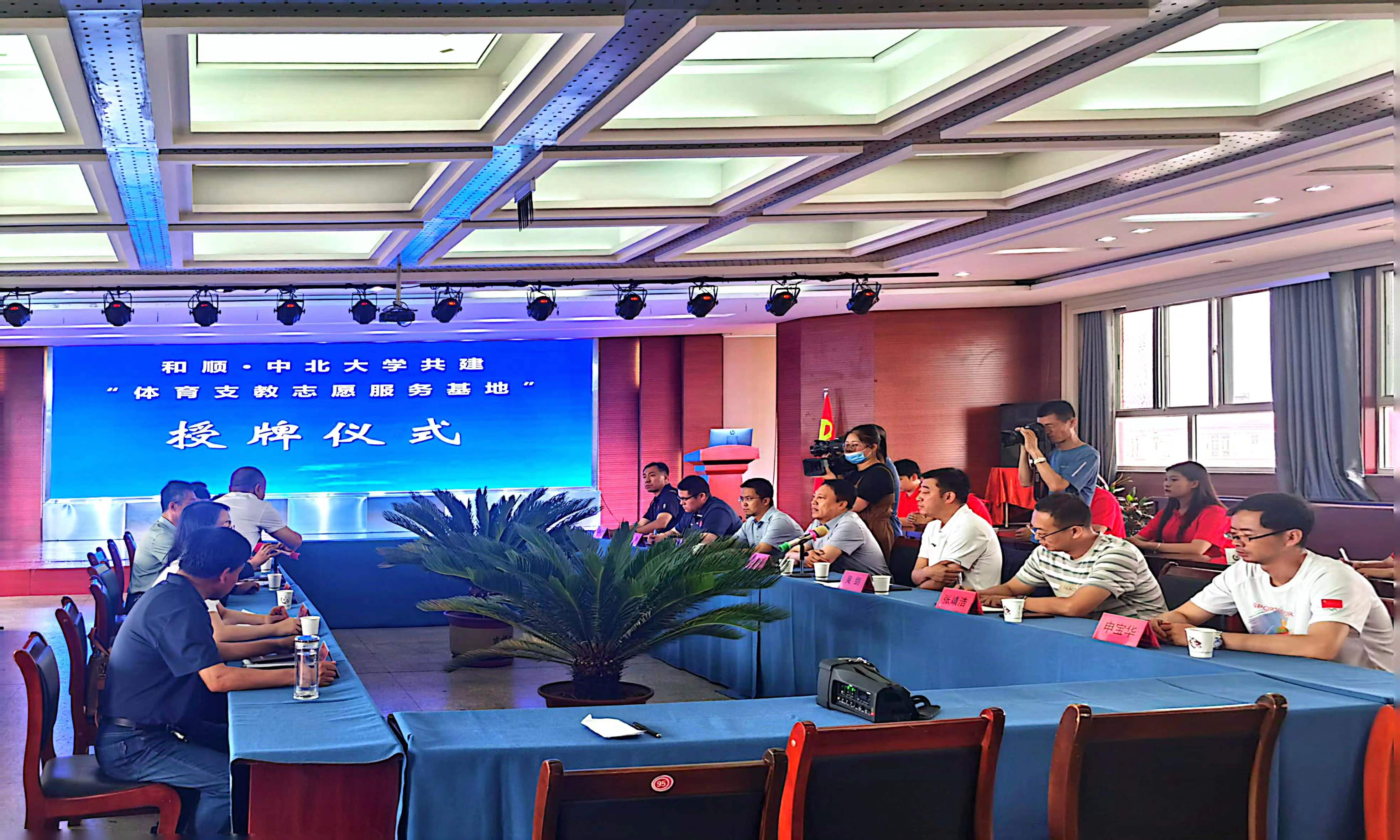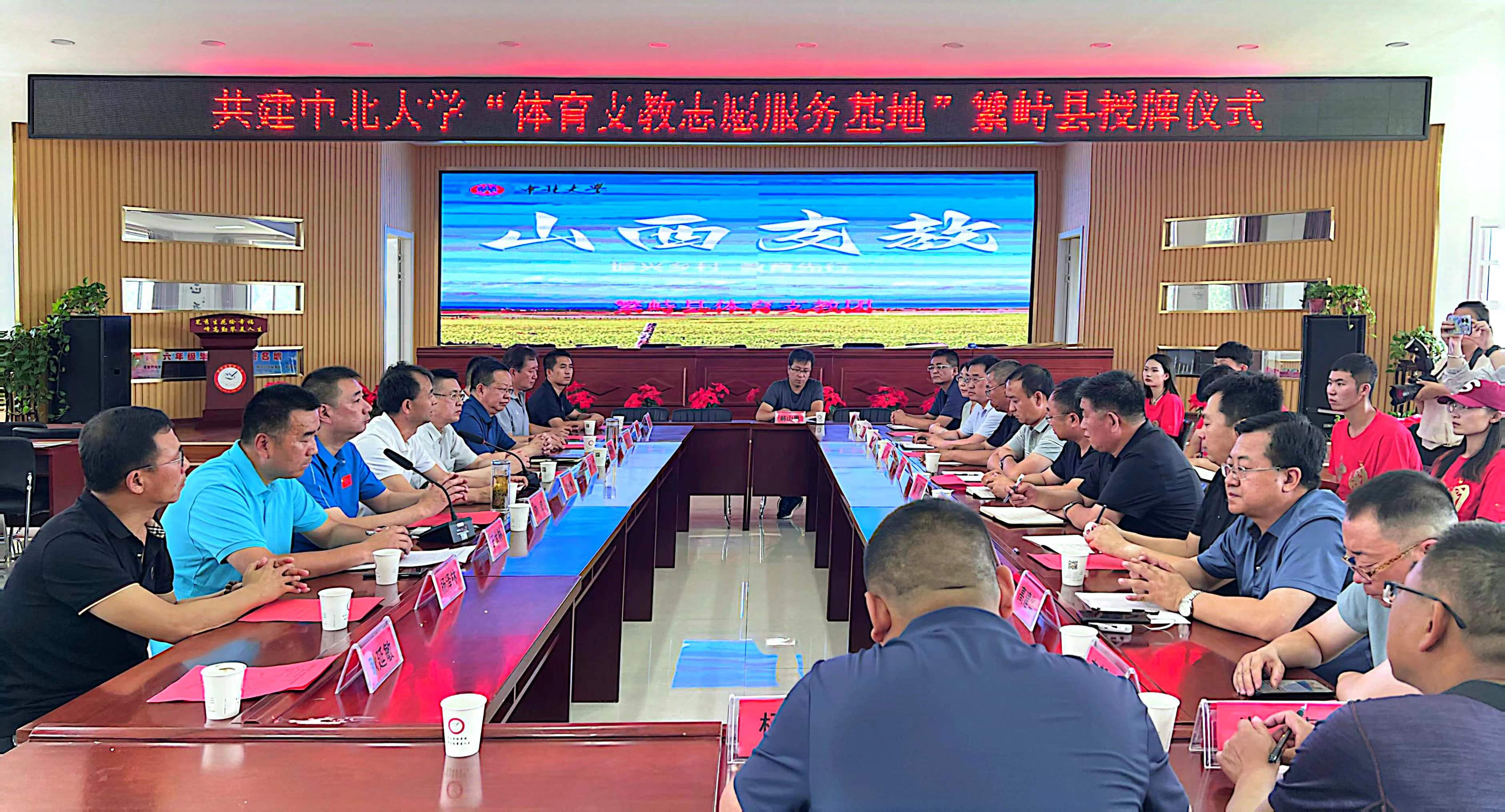 6月28日,中北大学体育学院在院党委书记曹电康教授和院长吴剑教授的带领下,分赴我省繁峙县、和顺县,举行“体育支教志愿服务基地”授牌仪式,并与当地教育局、支教服务单位负责人座谈。