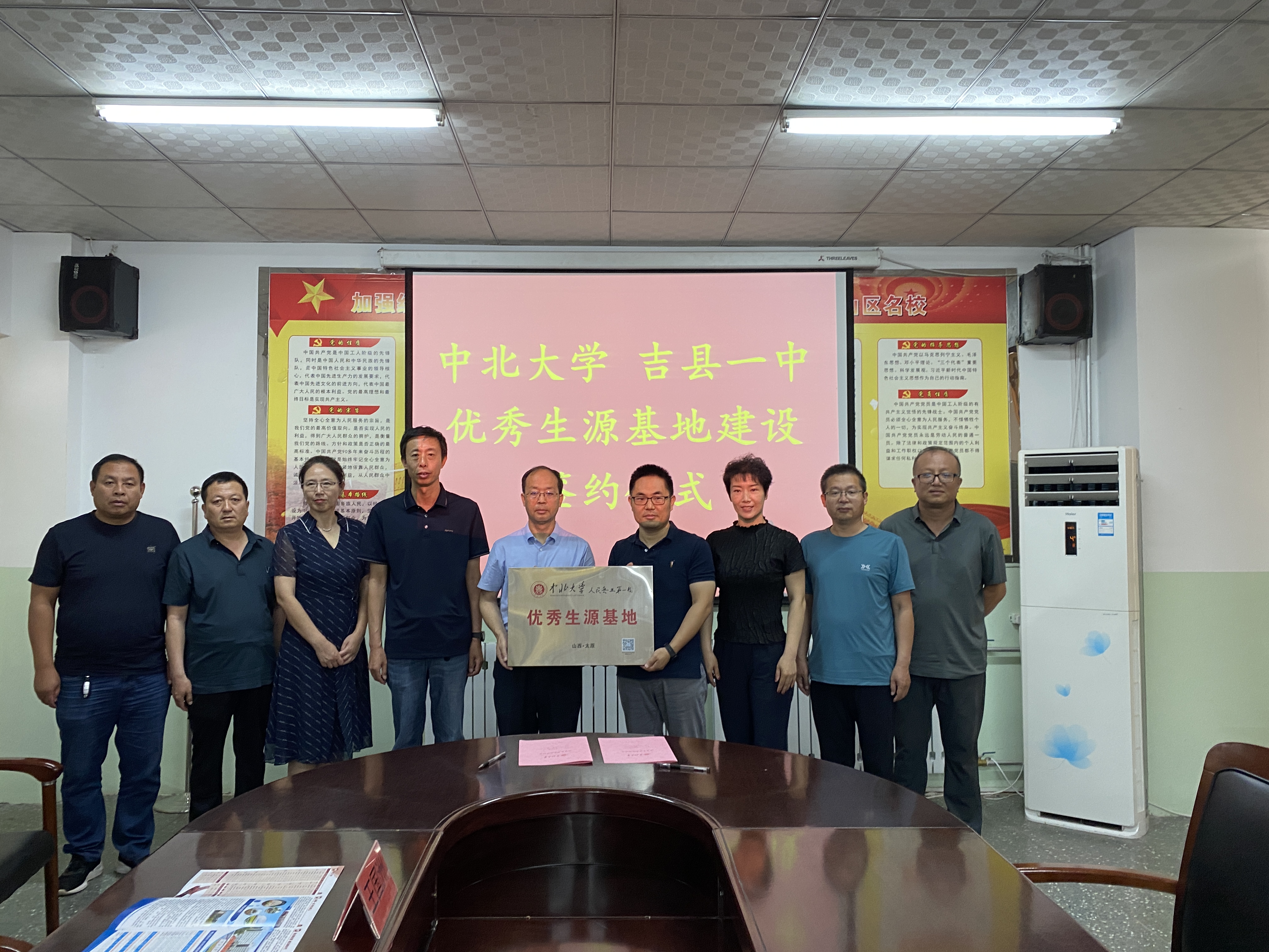 砥砺奋进新时代,赓续前行谱新篇。2023年7月1日、2日,中北大学半导体与物理学院党委书记李仰军一行赴临汾市大宁县第一中学、汾西县第一中学、吉县第一中学、临汾市平阳中学、蒲县高级中学、隰县第一中学、乡宁县第一中学校、永和县第一高级中学开展“优秀生源基地”授牌仪式暨招生宣传。仪式上,双方就办学理念和特色、学校人才培养模式、2023年高考情况和招生政策进行了深入交流和探讨,并签署了《优秀生源基地建设协议》。