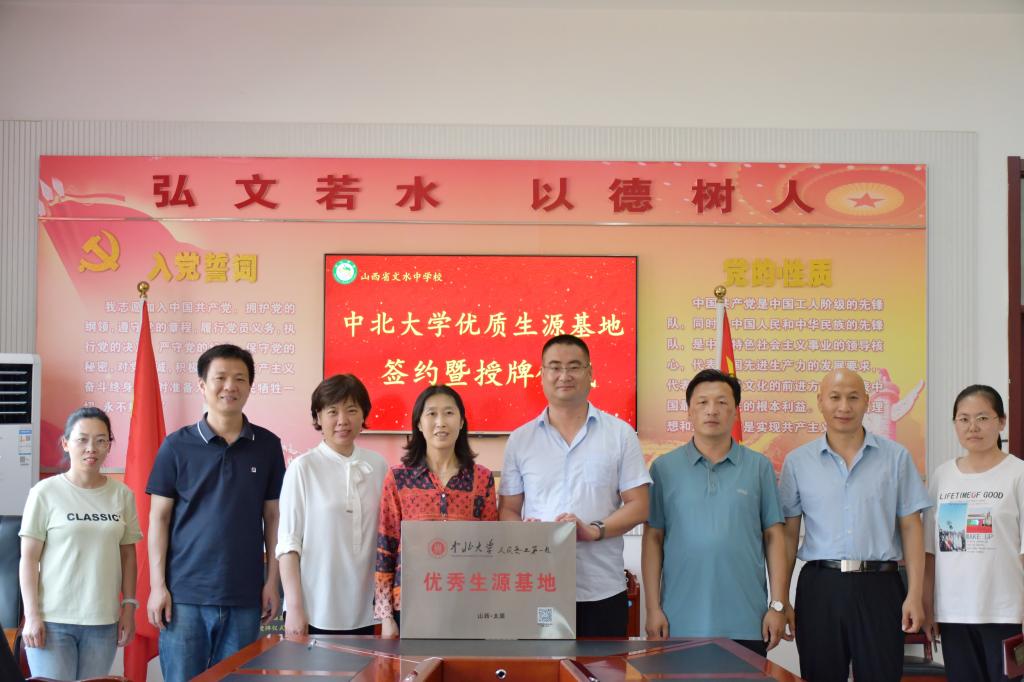 学院的招生宣传活动在吕梁地区受到中学、学生和家长们的欢迎。7月4日下午,学院受文水中学邀请,再赴文水。文水中学校长潘永胜带领学校师生与学院党委书记郝晓剑签订了优质生源基地并授牌,希望能更进一步促进双方的人才培养。郝书记为高一的学生进行了“熔铸红色基因,开放创新发展;点亮创新梦想,永攀科技高峰;扬帆起航出发,筑梦军工报国”的专题科普讲座,带领同学们了解中北大学红色基因,同时从大家感兴趣的科技创新切入,介绍了学校和学院为祖国海陆空天各型号装备提供技术支撑和关键仪器,鼓励同学们奋发学习,在不断进取中实现每个人所担负的使命。深入浅出地讲解,激发了同学们对大学的憧憬,积极互动,取得了很好的教育效果。