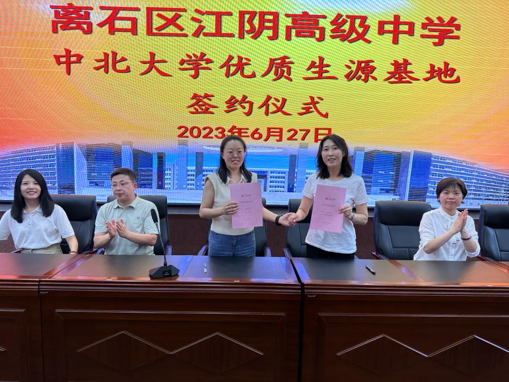 6月27日上午,招生宣传组走访了离石区江阴高级中学和吕梁学院附属高级中学。提前闻讯而来的考生和家长纷纷就志愿填报、学院和专业的选择进行咨询。郝晓剑书记和测控技术与仪器系主任刘文耀围绕学校简介、人才培养、学科建设、科学研究、师资力量、国际交流与合作、招生与就业进行招生宣讲,让参会的学子、家长和老师们感受到科技的魅力和创新的力量。离石市区江阴高级中学副校长任鹏燕和吕梁学院附属高级中学校长王三虎与我校分别进行了“优质生源基地”签约暨授牌。现场的考生和家长抓住机会,就报考中所遇到的问题进行面对面的咨询,工作人员们一一解答疑惑,有的留下联系方式,方便进一步的沟通。