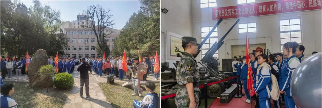 中北大学校史馆是进山中学旧址,学生入校参观的第一站选为校史馆,在校史馆门前广场,举行了“传承红色基因,弘扬民族精神,争做时代先锋”为主题的励志演讲,回顾了进山中学百年校史,以及与中北大学的深厚渊源,激发学生踔厉奋发,砥砺前行;研学参观第二站来到兵工发展科普基地——火炮库,学校安排的炮库讲解员为进山中学师生讲述了每种火炮的名字特性、作用效果及背后的故事,火炮的迭代发展,见证了中国共产党领导下的兵工事业从无到有、从少到多、从弱到强的过程,激励鼓舞了在场的每一位同学;研学参观第三站是在东区足球场观看我校学生航模协会的飞行表演,我校航模协会的学生为进山中学的师生进行了多种类型航模飞机展示、讲解及精彩的航模飞行表演,大家欢聚在操场上,共同见证了一场科技梦想的盛宴,从中激发了学生对航空探索的求知欲望和崇尚科学、热爱科学的热情。
