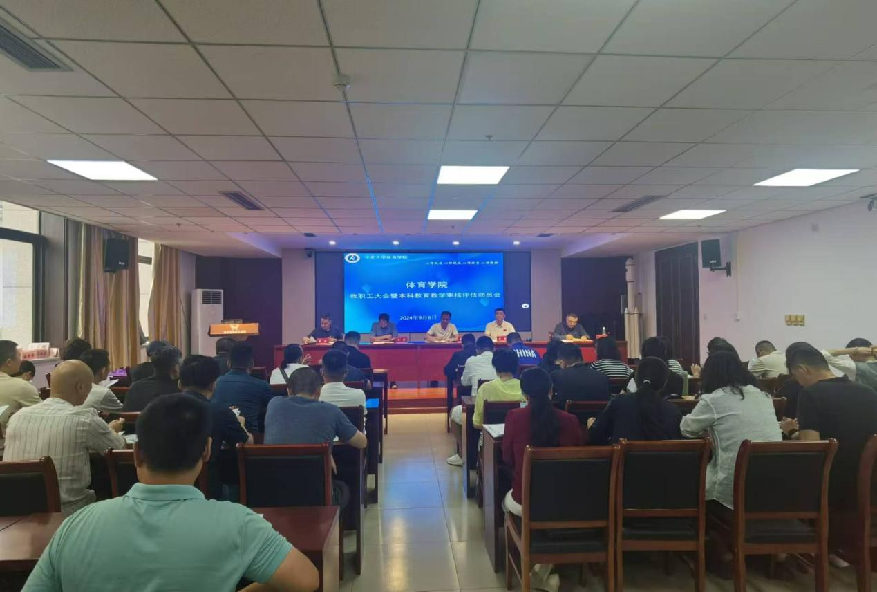 初秋时节,满园芳华,体育学院迎来了充满希望与挑战的新学期。为明确新学期工作目标,凝聚力量,2024年9月6日下午,体育学院召开教职工大会暨本科教育教学审核评估工作推进会,学院领导班子及全体教职工参加了会议,会议由体育学院党委副书记贾鹏主持。
