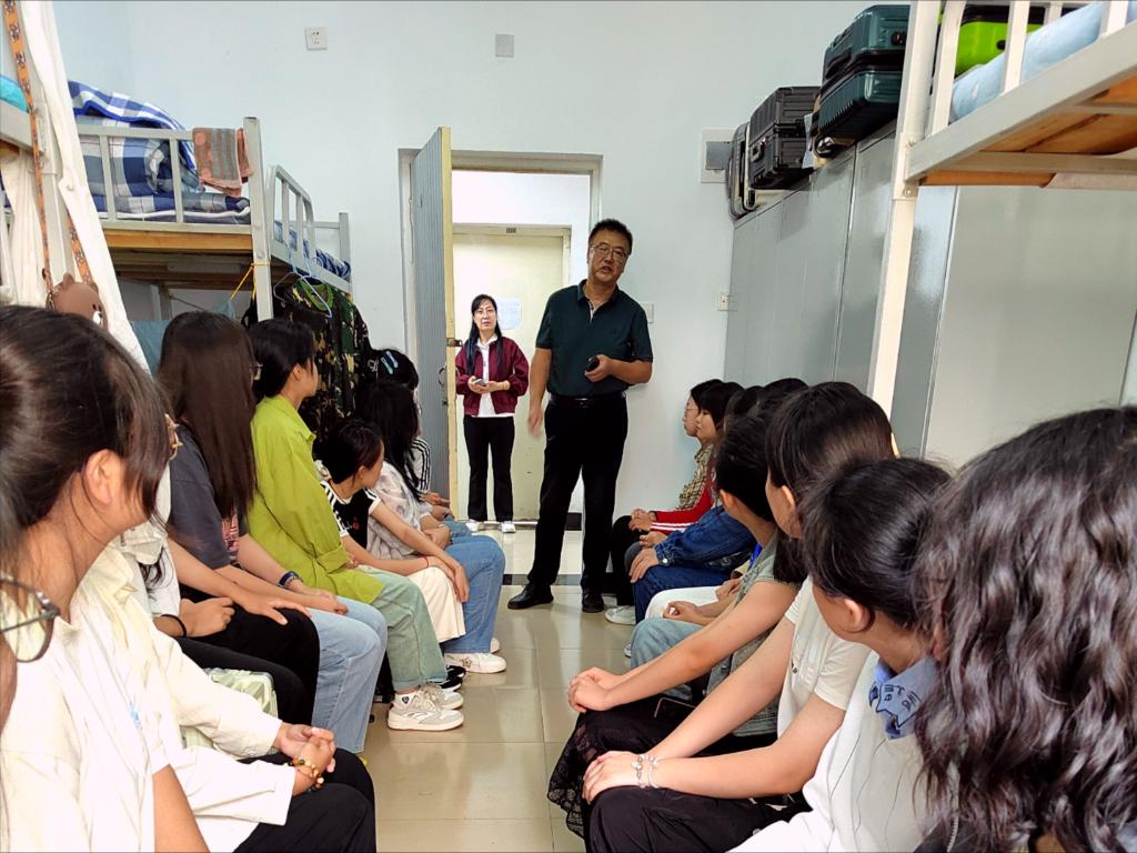 为深入了解2024级新生住宿和生活情况,帮助新生更好、更快地融入新集体、新环境、新生活。9月8日中午11:00学院党委书记曹凤才,院长陈平,院党委副书记兼副院长魏媛媛以及各系主任、专业负责人,在2024级全体新生班主任的陪同下,走进学生公寓慰问新生,“你们来在哪里呢?”、“山西最近的天气适应吗?”、“对所报专业了解吗?”……院领导与新生们进行深入交流,鼓励同学们积极转变角色,熟悉校园环境,尽快适应大学校园生活。