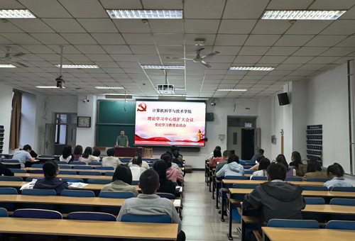 9月24日下午,计算机科学与技术学院党委在11号楼205室召开理论学习中心组(扩大)会议,集中学习党的二十届三中全会精神,对学院党纪学习教育情况进行总结,并就新学期学院党建工作进行了部署。学院党委委员、党支部书记、教工党员参加了会议,会议由院党委书记喻华兵主持。