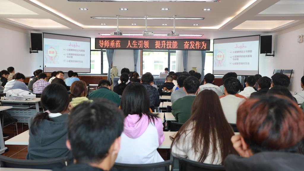 本次主题党日活动由校医院党支部书记吴芳芳带队,支委成员、部分党员干部和业务骨干参加,以“导师垂范、人生引领、提升技能、奋发作为”为主题,主要针对机械工程学院的部分班级开展培训。