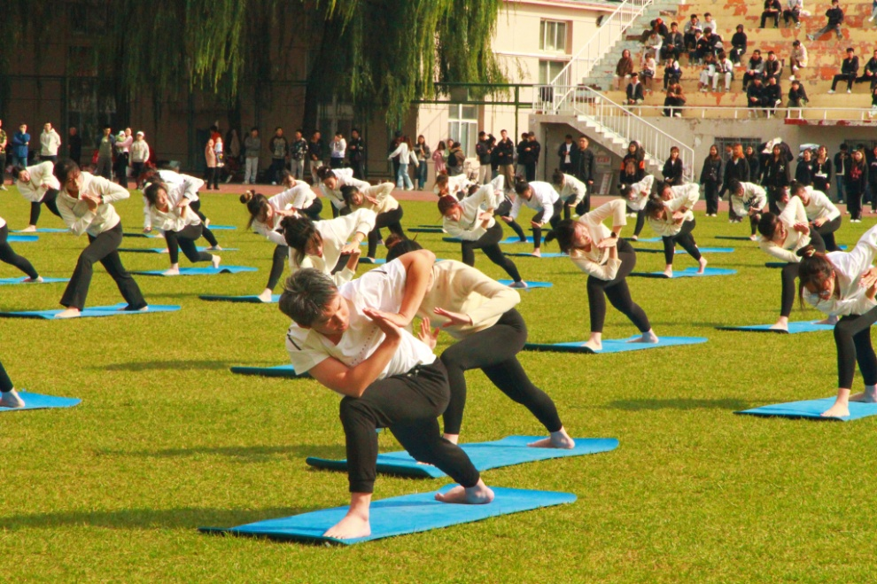中北大学2021级600名大学生在开幕式上进行了体育舞蹈、形意拳、瑜伽、街舞表演,他们或静如止水、穆如春风,或动感十足、激情四溢,充分展示中北大学大学生积极向上的青春活力和魅力,最后,“爱运动、爱中北”的口号响彻全场。