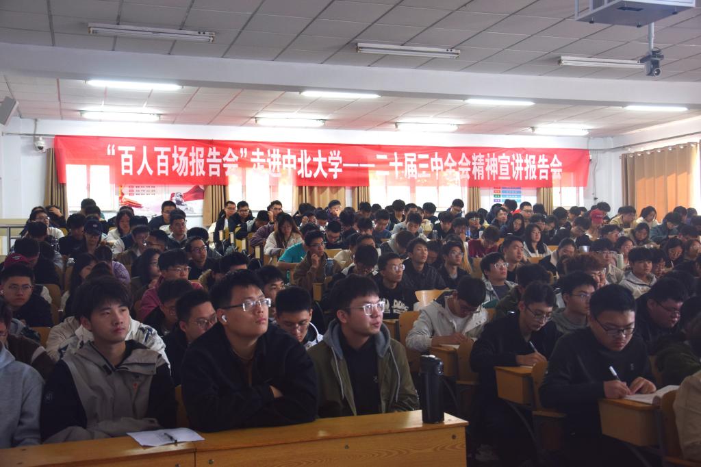 10月27日上午10点,“百人百场报告会”走进中北大学—二十届三中全会精神宣讲会作为学院入党积极分子培训的一个专题在08301H教室举行,学院邀请到山西财专的陈彪教授进行讲授,陈教授从全面深入领会党的二十届三中全会重大意义、深刻认识进一步全面深化改革的总体要求、进一步全面深化改革的系统部署、学习好贯彻好党的二十届三中全会精神四个方面,用深入浅出的理论阐释、旁征博引的鲜活案例,讲授了一堂释疑解惑、催人奋进的专题报告。
