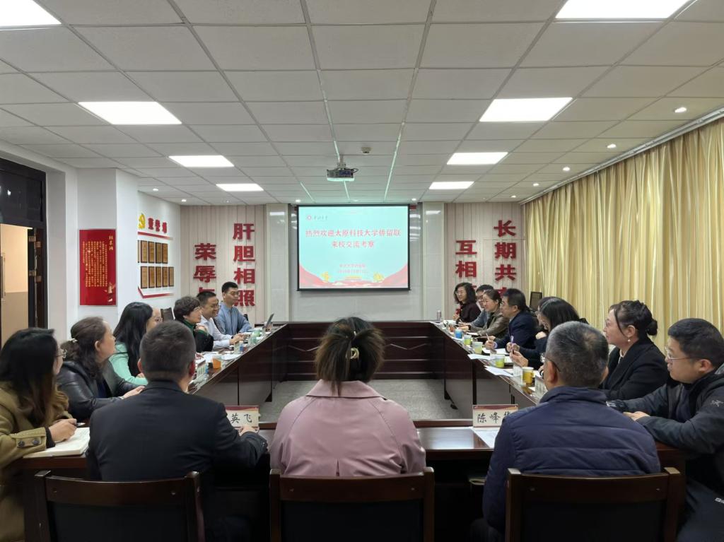 太原科技大学侨留联于近日成立,侯华会长带领领导班子集体前来中北大学调研交流,共同探讨“我为侨留联做什么”以及“侨留联能为学校发展做什么”等问题,并希望今后加强两校侨留联在工作交流、科研合作、学科建设等方面的联系。