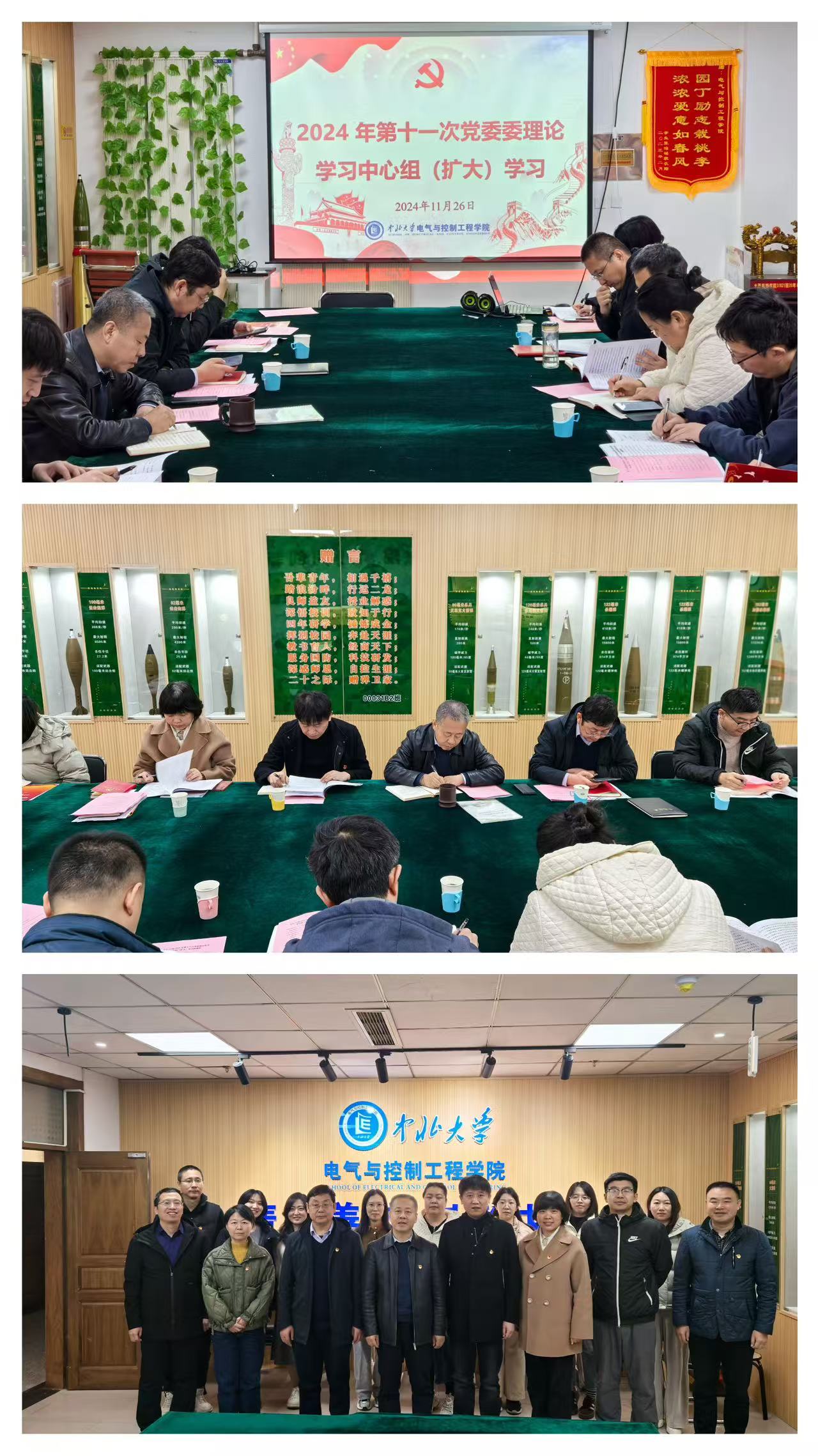 2024年11月26日上午,电气与控制工程学院党委在11号楼619会议室召开党委理论学习中心组集中学习(扩大)会,院党委委员、党支部书记参加了会议,会议由院党委书记赵正杰主持,计算机科学与技术学院党委副书记杨晓东列席会议。
