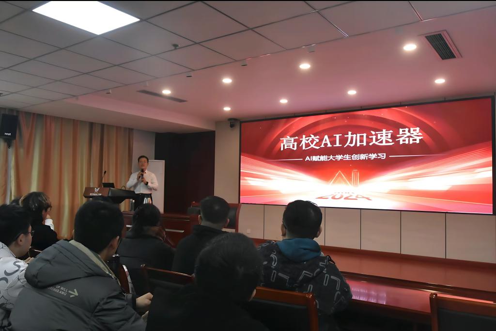 此次活动特别邀请了山西焦煤集团党校、教育培训基地二级培训专家、高级政工师梁栋作为主讲嘉宾。梁老师以“AI时代大学生创新学习来看如何助力创业者”为主题,为现场师生带来了一场精彩纷呈的讲座。讲座中,梁栋老师深入浅出地剖析了AI在学习、工作及生活中的广泛应用,包括文件处理、图片识别、代码编写、音乐创作、绘图设计等多个方面。他通过生动的案例和详实的数据,展示了AI技术如何极大地解放了我们的工作量,提高了工作效率。同时,梁老师也强调了AI技术在学习领域的应用,指出个性化学习体验不仅能够让学习变得更加有针对性,还能有效激发学生的学习兴趣和创造性思维能力。