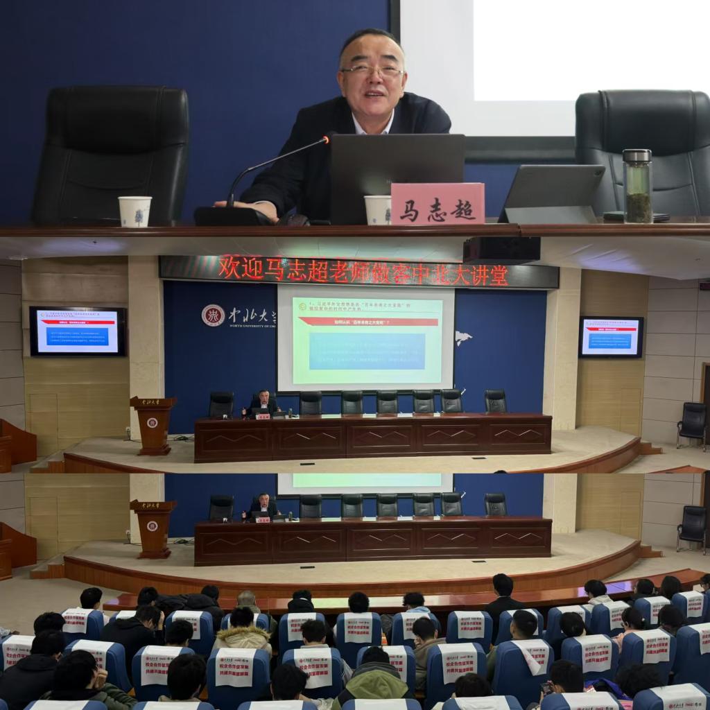 11月29日,由学生工作部主办、数学学院和人文学院承办的'中北大讲堂'活动在瑾瑜国际会议中心成功举办。本次活动特别邀请山西省社会科学院(省政府发展研究中心)国际问题研究所所长、国家社科基金项目评审专家、山西省学术技术带头人、山西省宣传文化传统“四个一批”人才、山西省智库发展协会常务副会长兼秘书长马志超老师以“习近平外交思想和我国安全形势”为主题进行讲解。