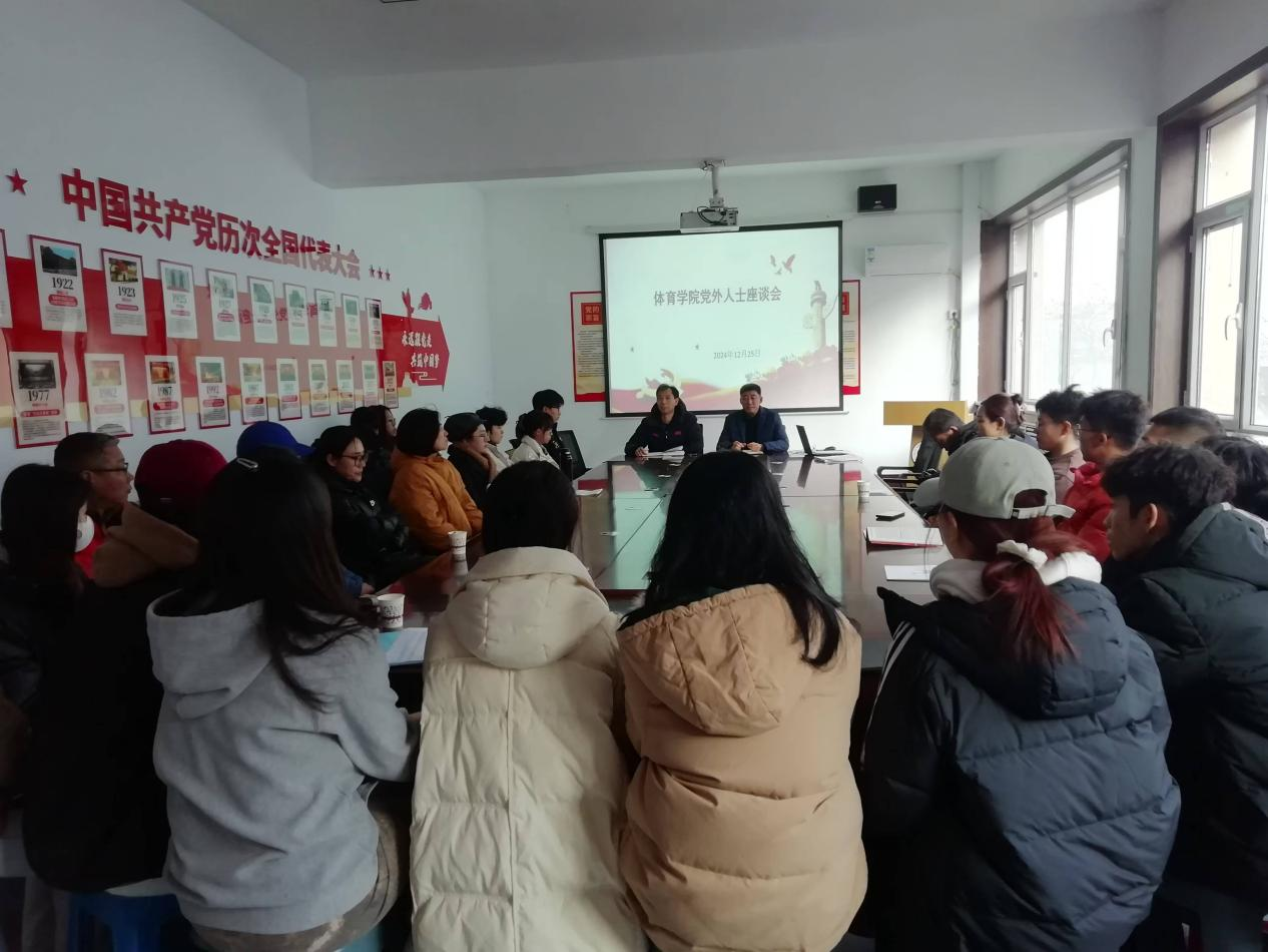 2024年12月25日下午,体育学院党委在317党员之家成功召开了党外人士座谈会。学院党委书记曹电康、院长吴剑以及学院的多位教师和学生代表共同出席了会议。与会人员包括群众及各民主党派人士,现场气氛热烈而融洽。