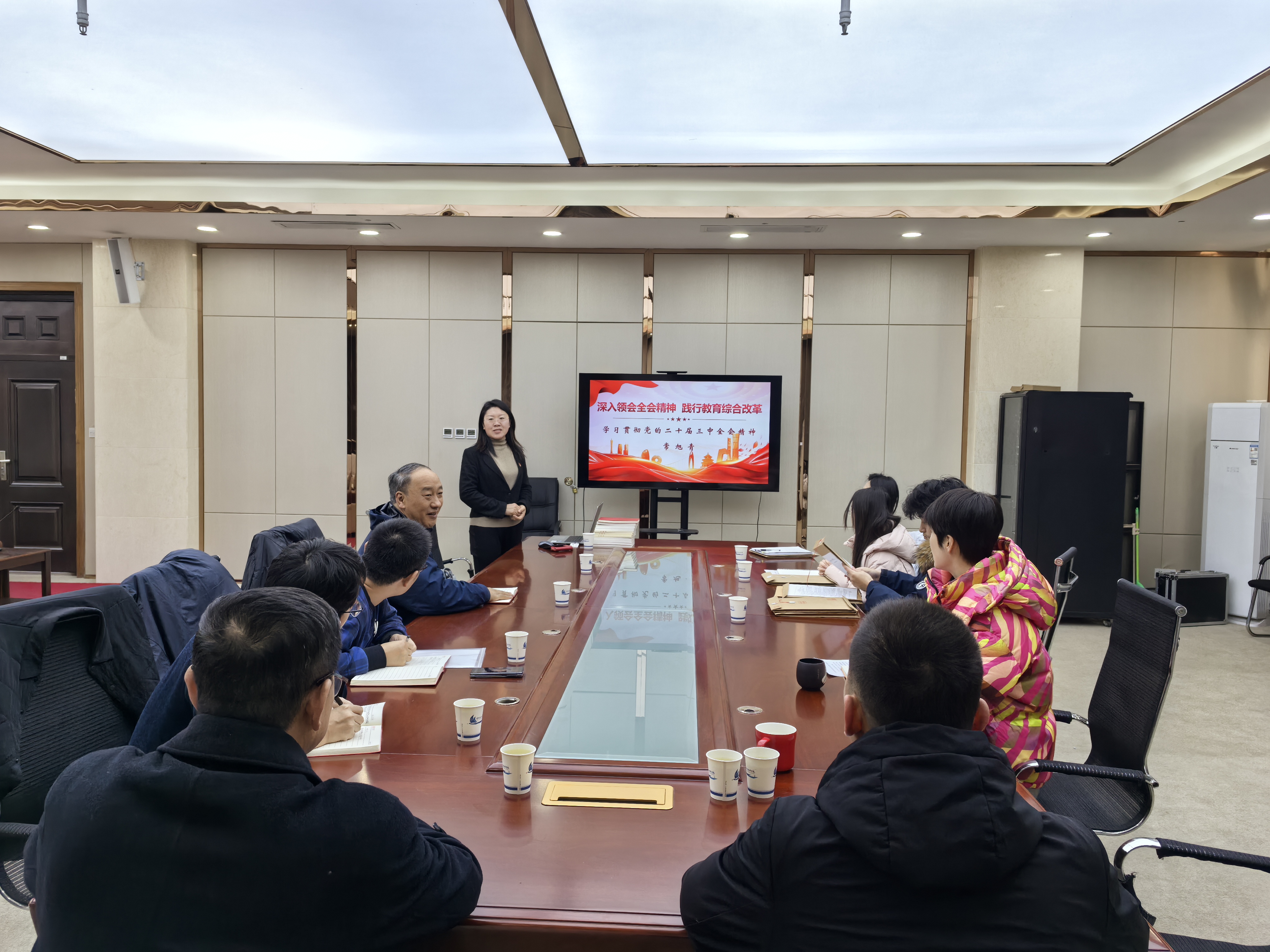 为深入学习贯彻党的二十届三中全会精神,半导体与物理学院于2024年12月26日邀请软件学院党委书记常旭青同志作专题辅导报告。本次报告会的主题为《深入领会全会精神践行教育综合改革——学习贯彻党的二十届三中全会精神》,旨在引导学院师生深刻理解全会精神,积极投身教育综合改革实践,学院党委理论学习中心组成员及党支部书记参加了报告会。