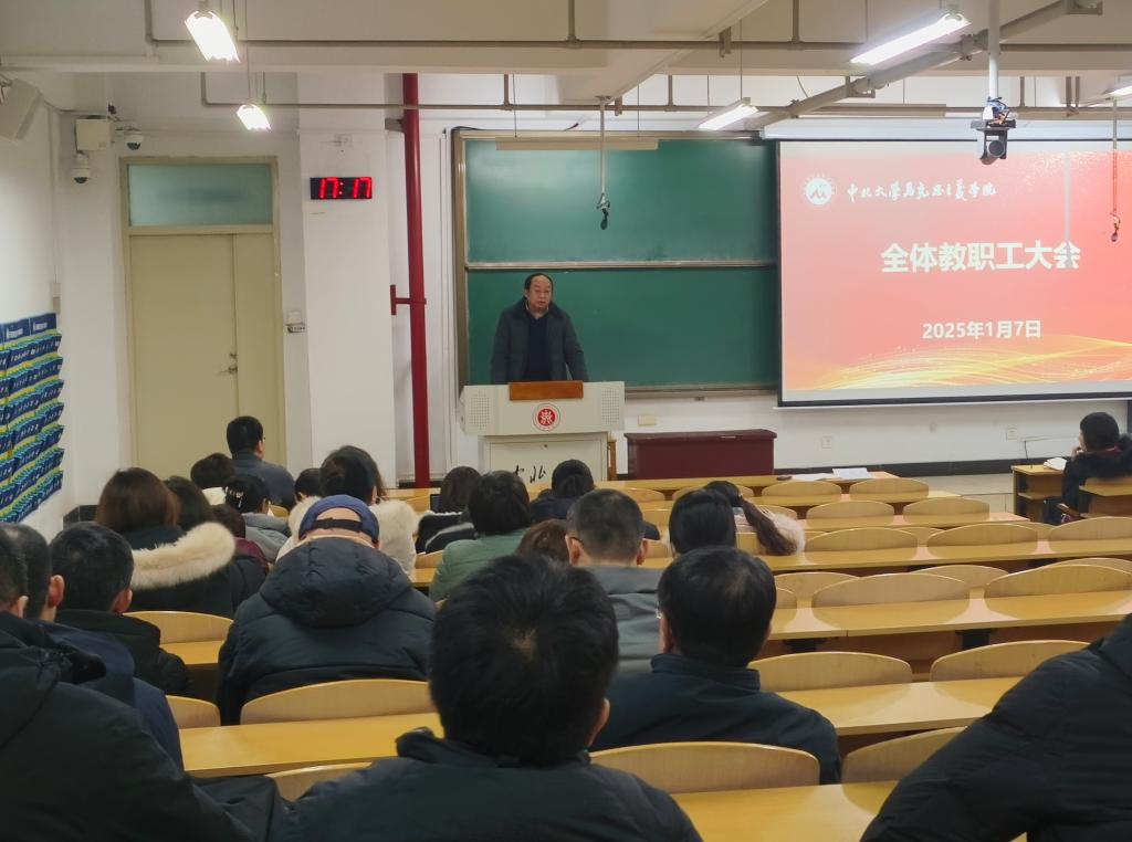 1月7日下午,马克思主义学院2025年第一次教职工大会在15106H举行。学院班子领导和全体教职员工参会,会议由学院党委副书记李庆乐主持。
