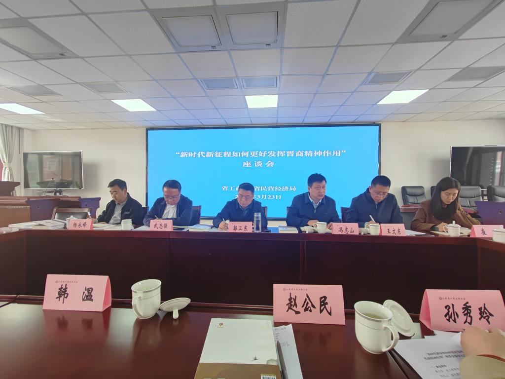 山西省工商联、省民营经济发展局3月23日上午在省工商联举行“新时代新征程如何更好发挥晋商精神作用”座谈会,经济与管理学院赵公民院长受邀参加。会议由山西省工商联武志强主任主持。出席会议的有山西省工商联副主席、省民营经济发展局副局长;山西省社科院、山西大学、山西财经大学、太原科技大学相关单位的专家学者;元工能源科技集团等7家新晋商民营企业董事长。
