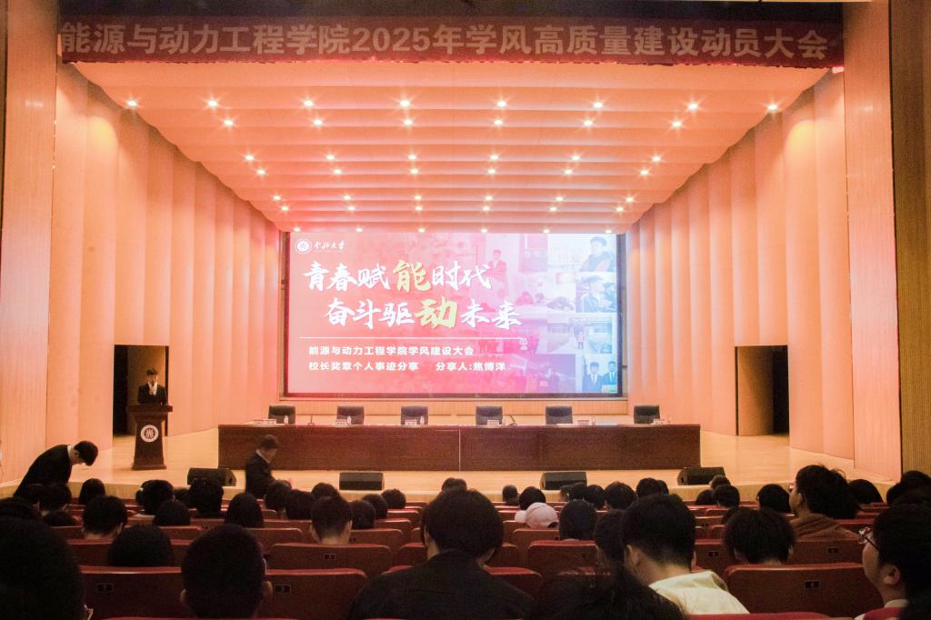 为营造学院醇厚院风、严谨教风,共同构筑班风清朗、学风浓郁的精神沃土,2025年4月15日下午,能源与动力工程学院于科艺苑报告厅隆重举行2025年学风高质量建设动员大会。学院领导班子成员、各系主任莅临大会,“七色光”育人标兵、阳澄湖(相城)奖学金获得者代表、2023级和2024级本科生共同参会。本次大会由学院党委副书记任雁主持。