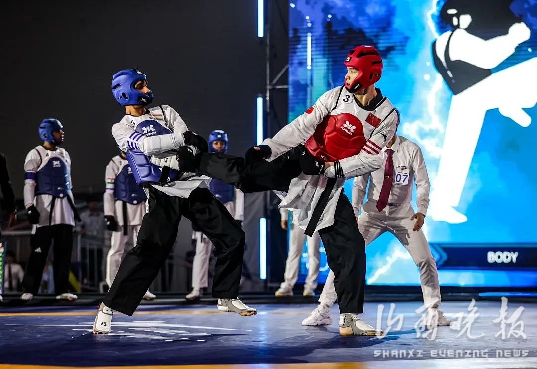 中国队派出张梦宇、肖树楠、孟明宽、项启彰四位选手仅参与混合团体组一项比赛的角逐,这也将是巴黎奥运会跆拳道混合团体表演项目的中国队阵容,因此,本次比赛是一次关键的奥运前哨战。决赛中,中国队迎战劲旅伊朗队,以硬朗的打法和默契的配合,最终以2:1的比分获胜。