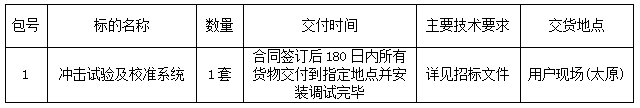 本中北大学冲击试验及校准系统采购项目已由项目审批/核准/备案机关批准,项目资金来源为国有资金,招标人为中北大学。本项目已具备招标条件,现招标方式为公开招标。